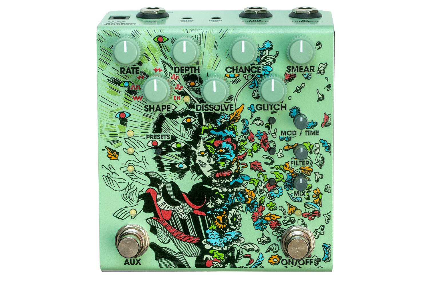 MIDI control over everything in the pedal, including MIDI clock in and out for external syncing